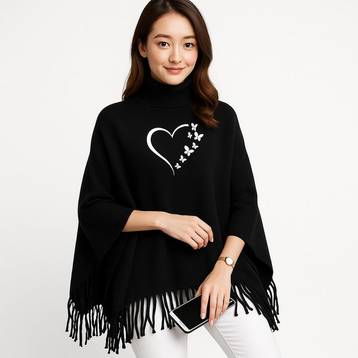 The Butterfly Heart Fleece Poncho combines cozy warmth with a stylish design.